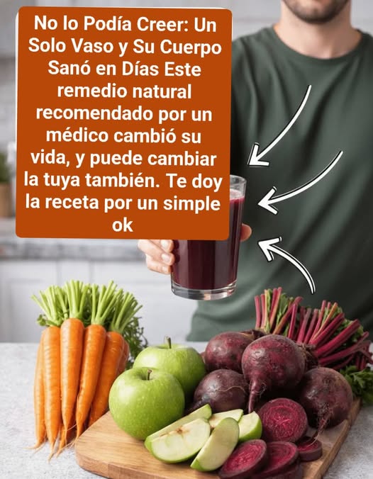 El zumo de manzana, remolacha y zanahoria es una bebida milagrosa Esta bebida es una esperanza para los pacientes de cáncer. De hecho, hace unos años, un herbolario chino recomendó esta bebida a sus pacientes que sufrían de cáncer de pulmón. Al tomar la bebida diariamente durante 3 meses, el paciente se recuperó de esta enfermedad potencialmente mortal. No sólo es eficaz para el cáncer de pulmón, sino que cura casi todos los tipos de cáncer al inhibir el crecimiento de las células cancerosas. Es muy eficaz para mantener la salud de otros órganos del cuerpo como el riñón, el hígado y el páncreas y los protege de varias enfermedades. También puede fortalecer los órganos como el corazón y los pulmones.