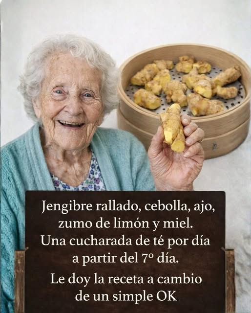 👉🏼 Jengibre rallado + cebolla + ajo + jugo de limón + miel 🍯